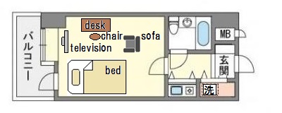 | 電化製品 | エアコン,テレビ,ドライヤー,ミニ冷蔵庫,洗濯機,掃除機,電気ポット,電子レンジ |